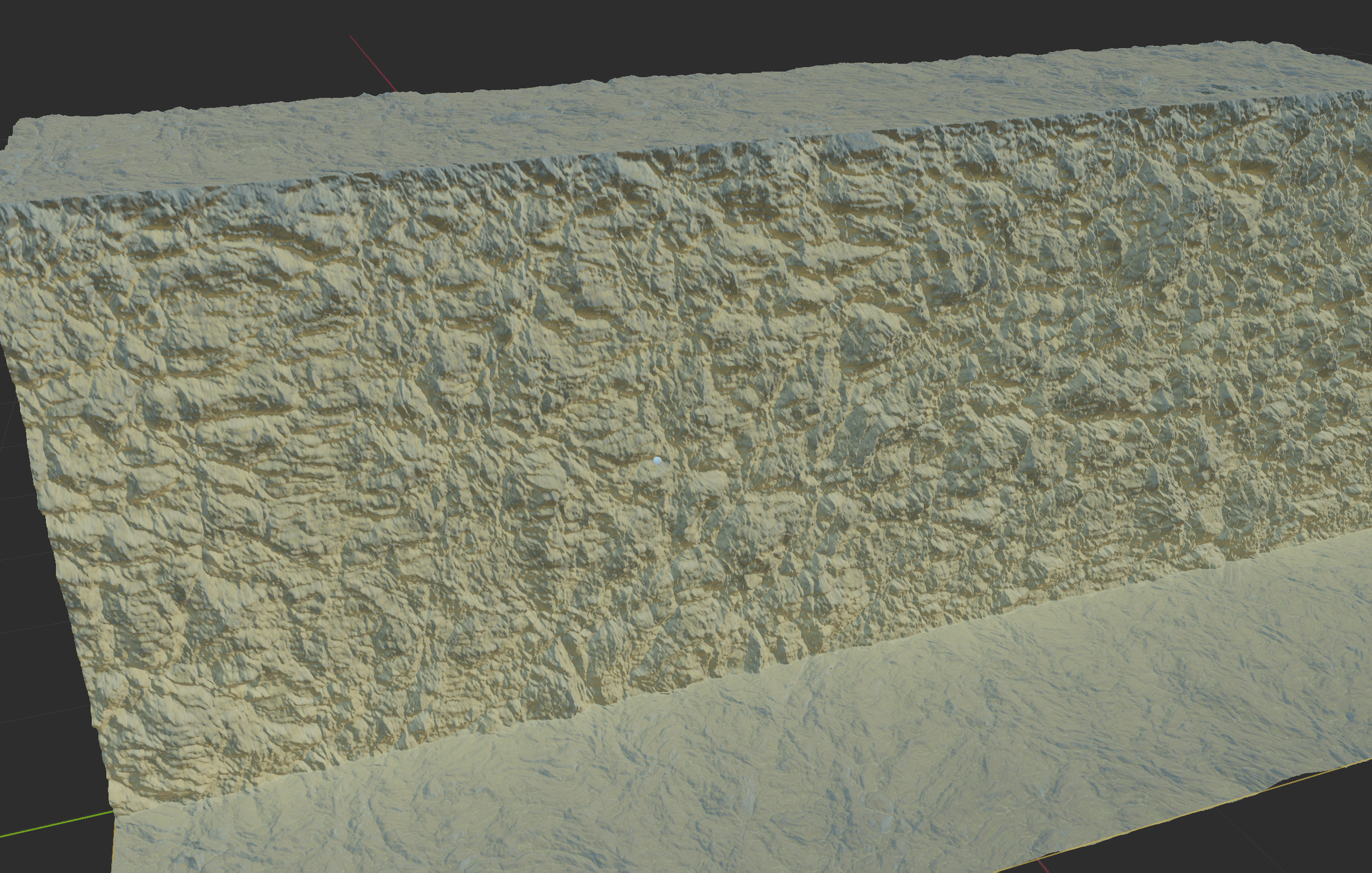 And this has worked well for a long time. But as computers get ever more powerful and we keep pushing detail scale ever finer, the problems become more apparent and objectionable. At 40m/px, the earth’s surface essentially is a heightfield. At 0.25m/px, that’s trivially untrue for anything except piles of dry sand! The reason: in nature, rock — and even soil — has shear strength which supports steep critical slopes, overhangs, and true 3D structure and detail.